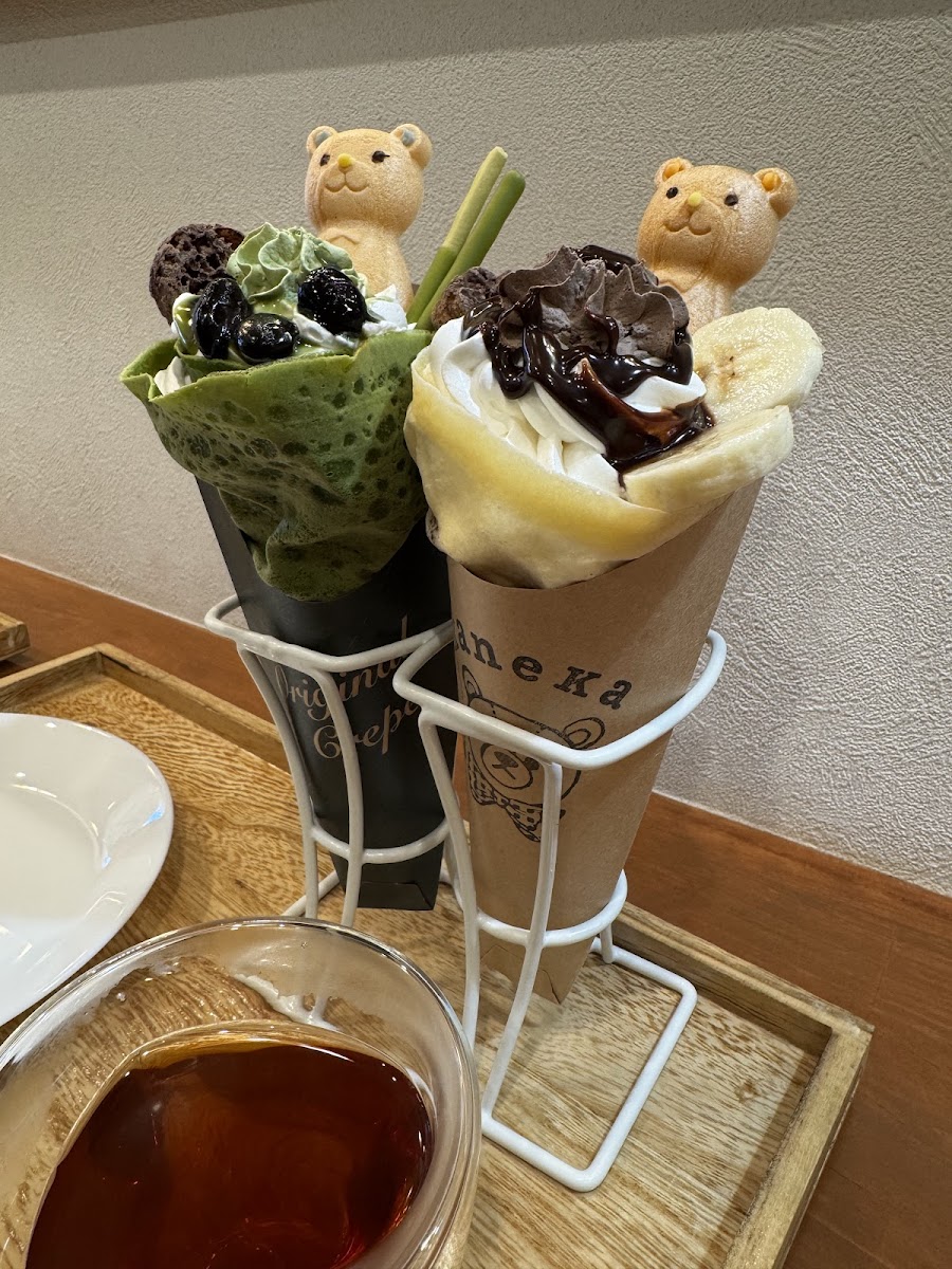 Shibataen's menu features unique creations, including the much-lauded 抹茶クレープ (Matcha Crepe) priced at just 550 yen. Made with a rare matcha-infused batter, as remarked by M, this crepe is a visual treat with its vibrant green color, and it doesn’t disappoint in flavor. The subtle sweetness of the matcha harmonizes beautifully with the not-too-sweet whipped cream and the delightful adzuki bean filling, making for a satisfying bite that leaves you wanting more.